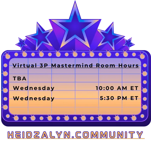 We meet weekly to discuss your answers in small groups of up to six. The virtual 3P Mastermind Room will be open three times each week. You can attend one or all of them as a member.